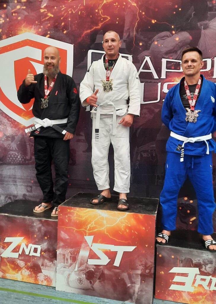 Diese Vorbereitung hat sich auf jeden Fall gelohnt. Simon und Markus konnten 2/4 Matches für sich entscheiden. Arseni, der mit 17 Jahren bei den Erwachsenen gestartet ist, konnte 3/4 Matches durch Submission beenden und hat sich damit die Silbermedaille verdient. Rafi konnte alle 3 seiner Kämpfe vorzeitig beenden und hat damit die Goldmedaille in seiner Klasse geholt. Für das erste Turnier sind das sehr sehr gute Ergebnisse, auf die die sie stolz sein können. Ein Dankeschön geht auch an unsere Supporter Andre, Sergey, Korbi und Said, die früh aufgestanden sind um uns zu begleiten.